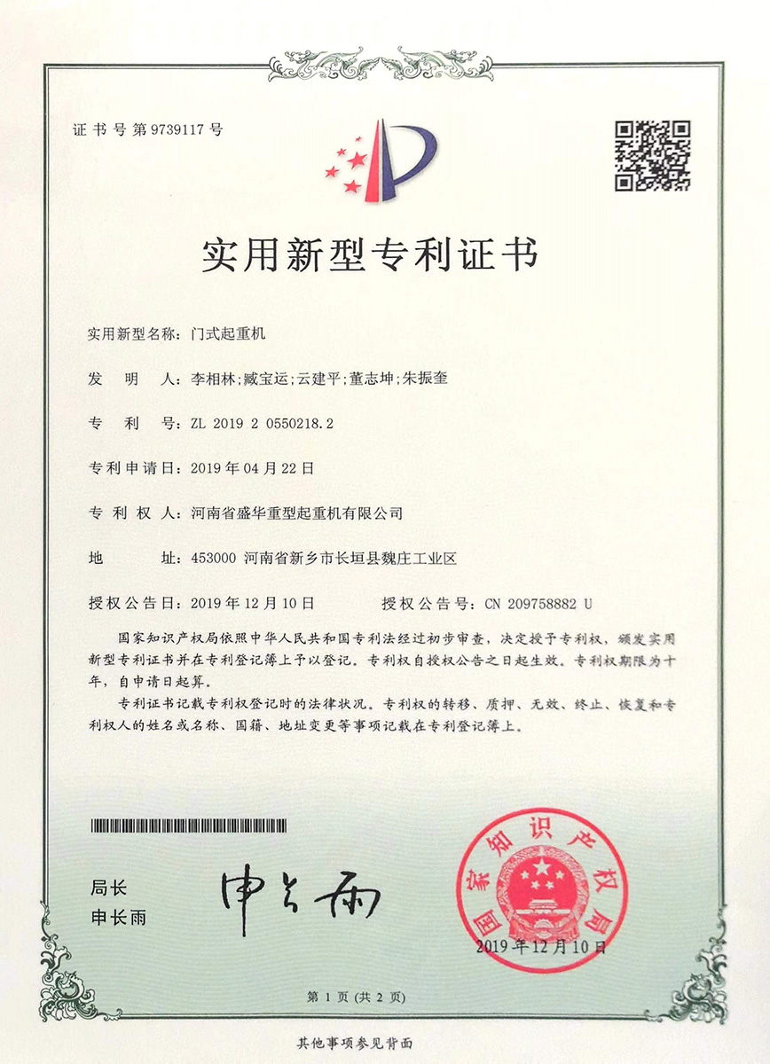 公司早已順利通過ISO9001國際質量體系認證,ISO14001環境管理體系認證,GB/T28001職業健康管理體系認證,已榮獲“中國知名起重機十佳品牌”,“河南省博士后研發基地”,“信用AAA 級企業”等多項榮譽,獲得了10多項國家證書。